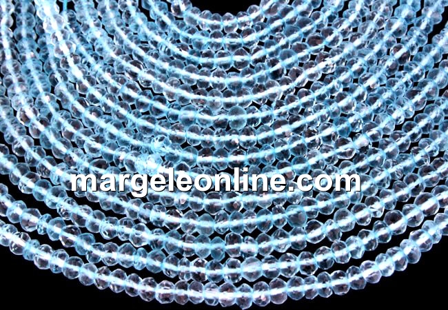 Margele topaz albastru natural , forma: rondele fatetate , marime: 2.8-3x1.8-2.3mm. Pretul se refera la 1 sirag de 33-34cm.