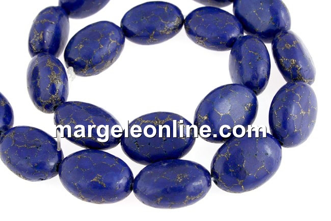Margele turcoaz natural vopsit cu insertie de pirita, forma: oval plat, dimensiune: 17x12.5x7.5mm. Pretul este pentru un sirag de 39cm.