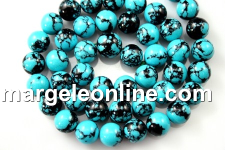 Margele turcoaz sintetic, forma: rotund, marime: 6mm, lungime sirag: 39-40cm. Pretul este pentru un sirag.