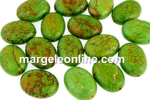 Margele turcoaz verde, forma: oval , marime: 20x15x10mm. Pretul se refera la 19 margele.