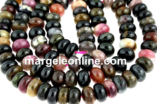 Margele turmalina multicolora, forma: rondela, marime: 9.5x6-6.5mm. Pretul este pentru un sirag de 40cm.