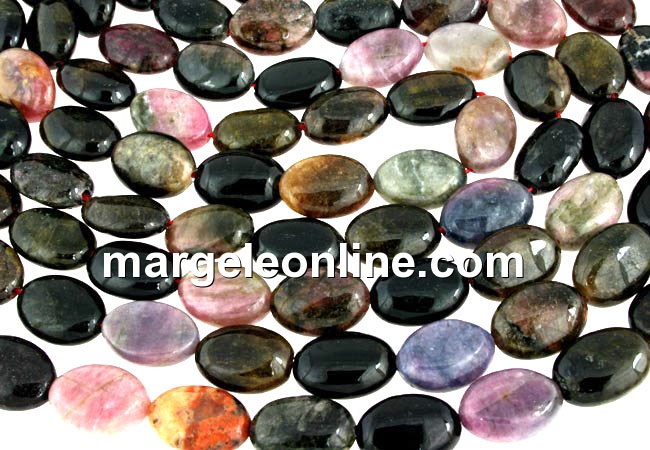 Margele turmalina naturala, multicolor, forma: oval plat, marime: 14x10mm, lungime sirag: 40cm. Pretul se refera la 1 sirag fara cheita.