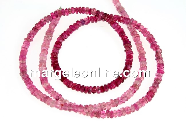 Margele turmalina roz, piatra naturala, forma: rondela fatetata, marime: 3.3x1-2mm. Pretul este pentru un sirag de 40cm.