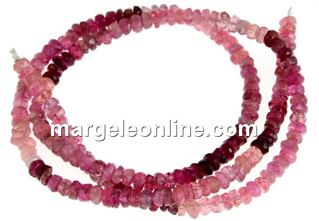 Margele turmalina roz, piatra naturala, forma: rondela fatetata, marime: 3.7x2-2.5mm. Pretul este pentru un sirag de 38cm.