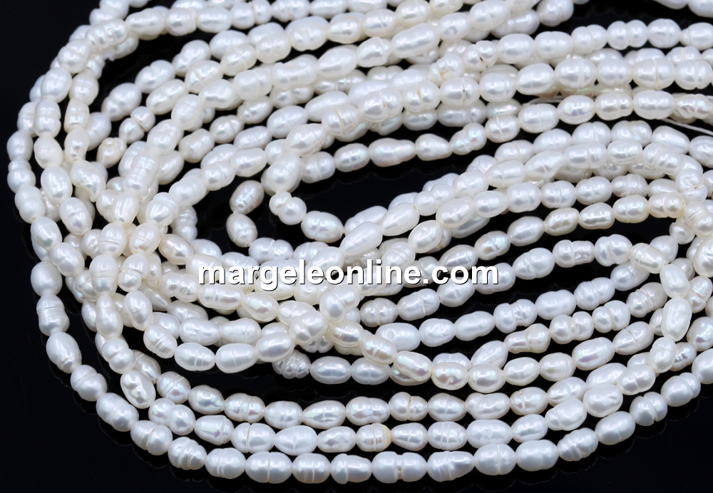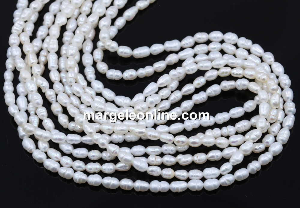 Perle de cultura naturale, marime variabila: 3.5-5x3mm, aspect: perlat lucios. Pretul se refera la 1 sirag de 36.5-37cm.