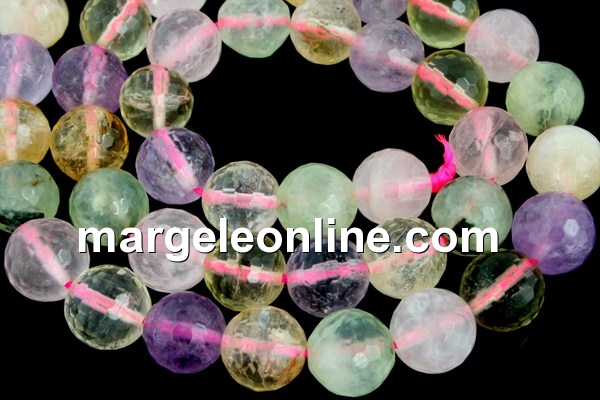 Mix cuart roz, ametist, citrin si prehnite, marime: 10mm, forma: rotund microfatetat, lungime sirag: 39cm. Pretul este pentru un sirag.