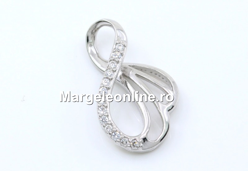 Pandantiv argint 925, placat cu rodiu, marcat, dimensiune: 22x13mm, prevazut cu 13 cristale Zirconia. Pretul se refera la 1 bucata.