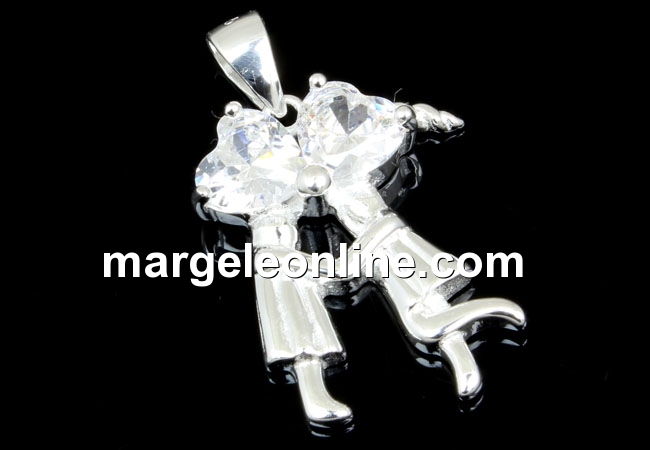 Pandantiv baietel si fetita cu cristale, argint 925, 26x16mm - x1