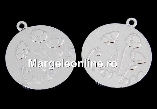 Pandantiv banut cu flori de mac argint 925, 17mm - x1