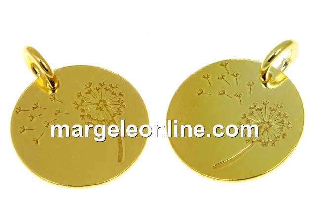 Pandantiv banut cu papadie argint 925 placat aur, 14mm - x1