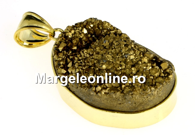 Pandantiv, druzy cuart, baza metal auriu, pretul se refera la produsul din imagine.