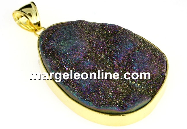 Pandantiv, druzy cuart, baza metal auriu, pretul se refera la produsul din imagine.