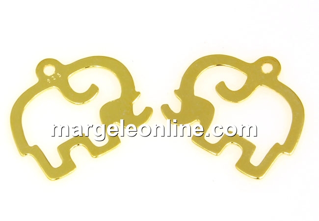 Pandantiv elefant, argint 925 placat cu aur, marcat, dimensiune: 16x14mm. Pretul se refera la 1 bucata.