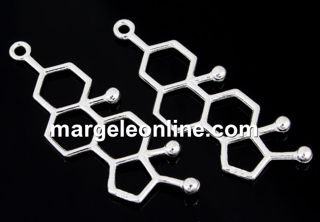Pandantiv argint 925, marcat, dimensiune totala: 38x13.5mm, formula chimica a testosteronului. Pretul este pentru 1 bucata.