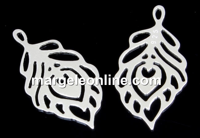 Pandantiv argint 925 marcat, dimensiune totala: 19.5x10.5x0.4mm. Pretul este pentru 1 bucata.