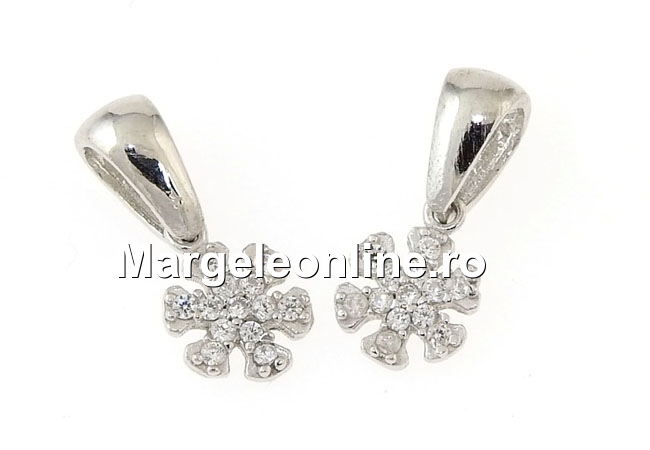 Pandantiv argint 925 placat cu rodiu, marcat, dimensiune totala cu agatatoare inclusa: 13x6mm. Pretul este pentru 1 bucata.