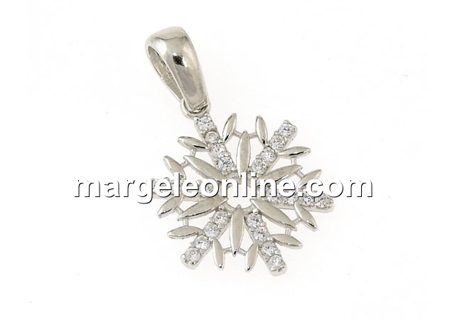 Pandantiv argint 925 placat cu rodiu, marcat, dimensiune totala cu agatatoare inclusa: 21x12mm. Pretul este pentru 1 bucata.