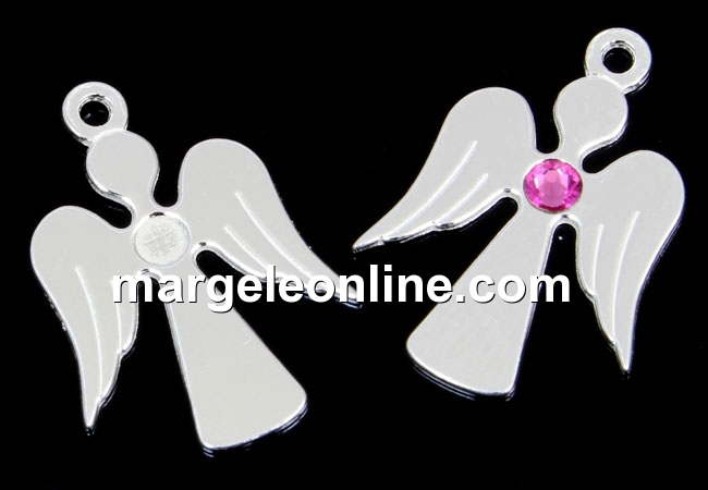 Pandantiv ingeras, argint 925, dimensiune: 17x12x0.5mm. Pretul este pentru 1 bucata. Produsul din imagine este cu titlu de prezentare, cristalul are dimensiunea 2.15mm (SS7) si poate fi achizitionat din categoria Rhinestone flat back Swarovski elements.