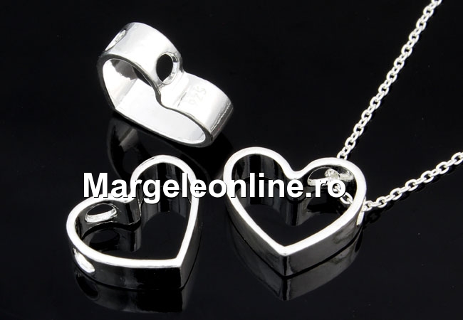 Pandantiv, forma: inima, material: argint 925, dimensiune: 13.3x11mm, 4.5 grosime, interior orificiu: 2.6mm. Pretul se refera la 1 bucata.