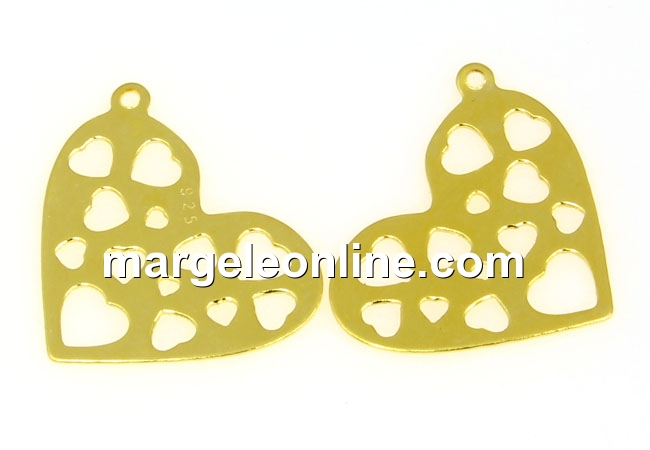 Pandantiv inima, argint 925 placat cu aur, marcat, dimensiune: 18mm. Pretul se refera la 1 bucata.