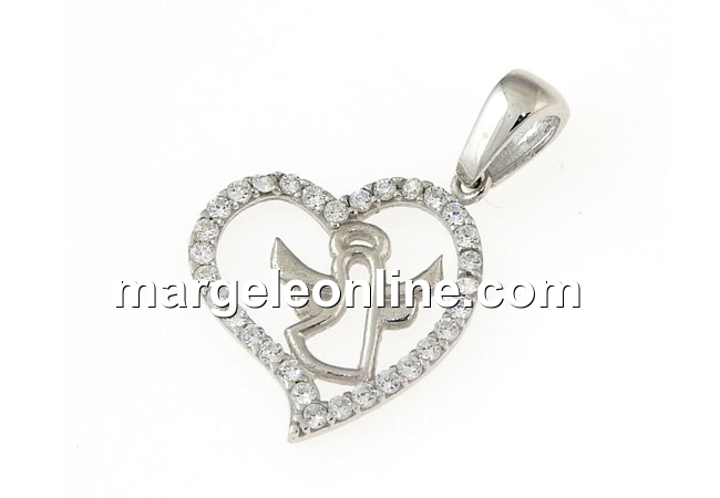 Pandantiv argint 925 placat cu rodiu, marcat, dimensiune totala cu agatatoare inclusa: 24x15mm. Pretul este pentru 1 bucata.
