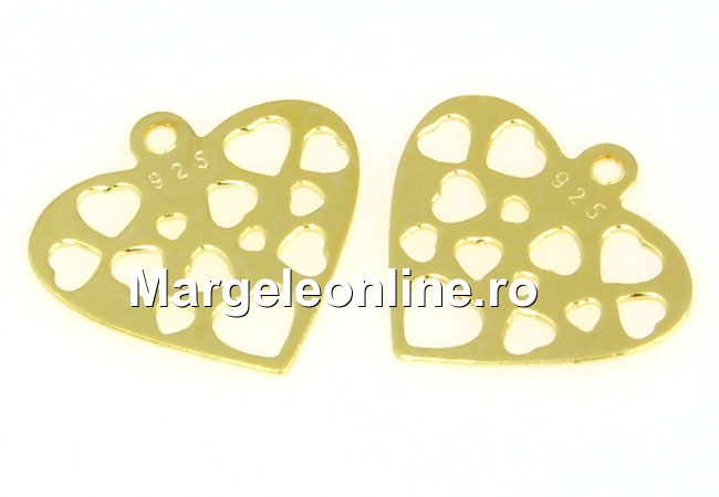Pandantiv inima cu inimioare, argint 925 placat cu aur, marcat, dimensiune: 12x12.5mm. Pretul se refera la 1 bucata.