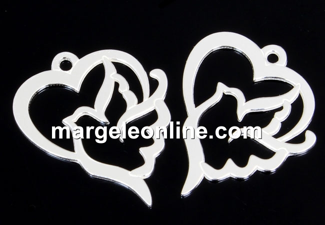 Pandantiv inima cu porumbel argint 925, 18mm - x1