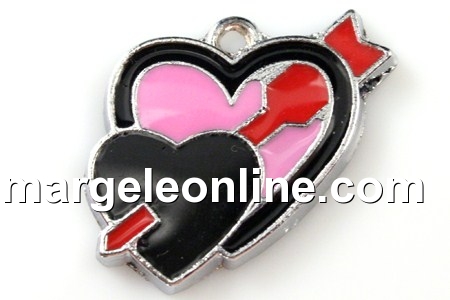 Pandantiv, inima cu sageata, negru cu roz - x2