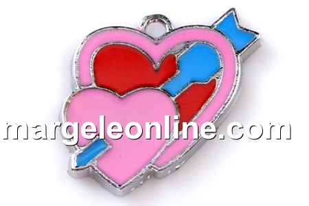 Pandantiv din metal, inima cu sageata, multicolor, 26.5x17.5mm. Pretul se refera la 2 bucati.