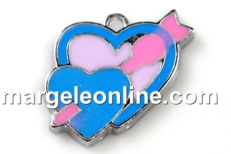 Pandantiv din metal, inima cu sageata, multicolor, 26.5x17.5mm. Pretul se refera la 2 bucati.