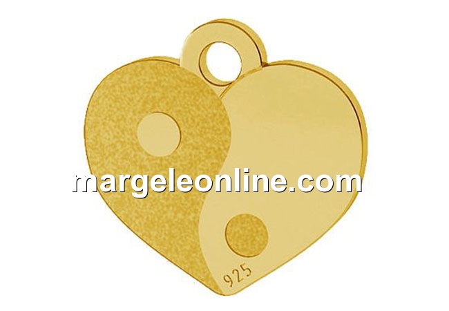 Pandantiv inima Yin Yang, argint 925 placat cu aur, marcat, dimensiune: 10x10.5mm. Pretul se refera la 1 bucata.