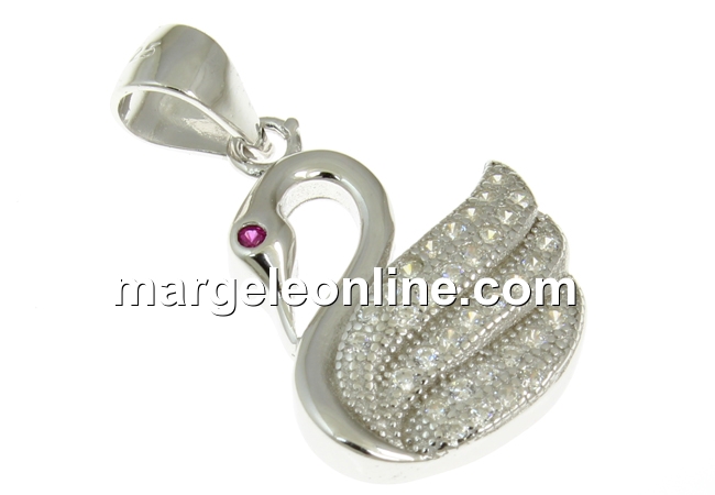 Pandantiv cu cristale, argint 925 placat cu rodiu, marcat, dimensiune: 23x14mm. Pretul este pentru 1 bucata.