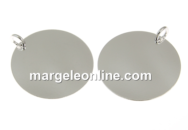 Pandantiv, banut cu 2 gauri argint 925 placat cu rodiu, dimensiune: 22mm, grosime: 0.35mm, dimensiune orificii: 1.15mm. Pretul se refera la 1 bucata.