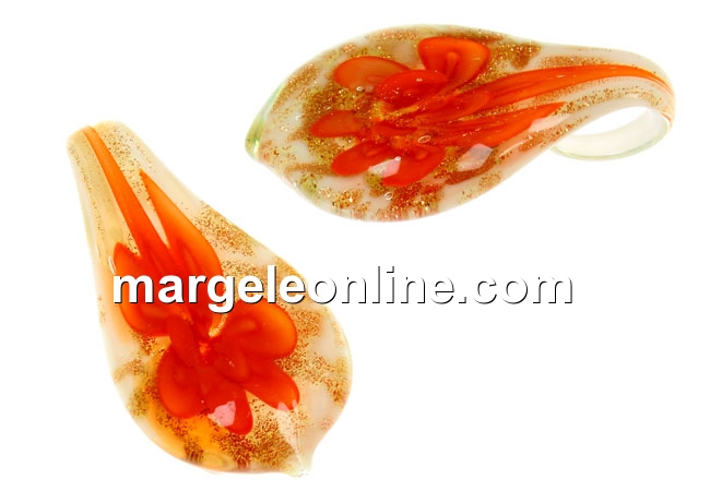 Pandantiv sticla Murano, dimensiune: 32x18mm, diametru orificiu prindere: 3mm, forma: picatura. Pretul este pentru 1 bucata, produsul se livreaza fara snur.