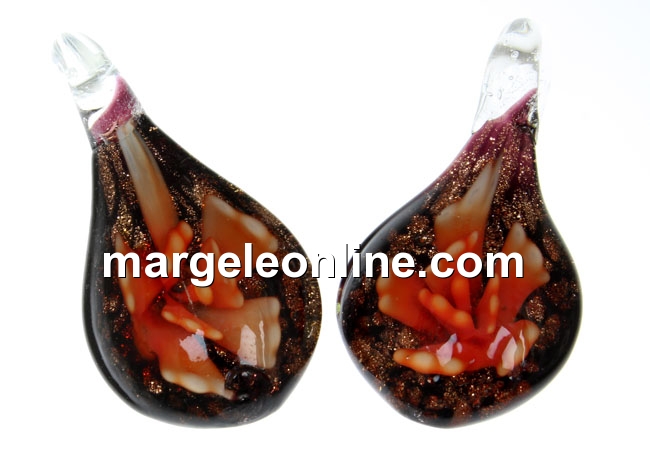 Pandantiv sticla Murano, dimensiune: 35-37x18mm, diametru orificiu prindere: 5mm, forma: picatura. Pretul este pentru 1 bucata, produsul se livreaza fara snur.