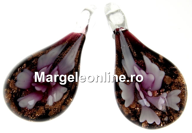 Pandantiv sticla Murano, dimensiune: 35-37x18mm, diametru orificiu prindere: 5mm, forma: picatura. Pretul este pentru 1 bucata, produsul se livreaza fara snur.