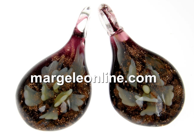 Pandantiv sticla Murano, dimensiune: 35-37x18mm, diametru orificiu prindere: 5mm, forma: picatura. Pretul este pentru 1 bucata, produsul se livreaza fara snur.