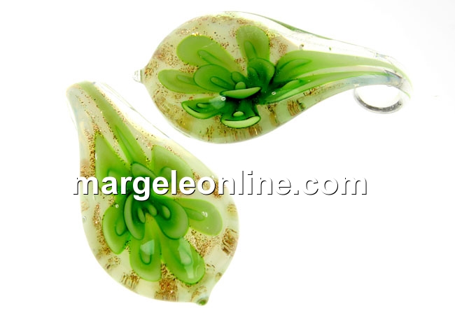 Pandantiv sticla Murano, dimensiune: 32x18mm, diametru orificiu prindere: 3mm, forma: picatura. Pretul este pentru 1 bucata, produsul se livreaza fara snur.