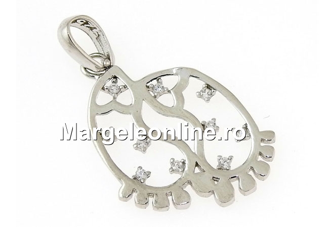 Pandantiv argint 925 placat cu rodiu, marcat, dimensiune totala cu agatatoare inclusa: 27x15mm. Pretul este pentru 1 bucata.