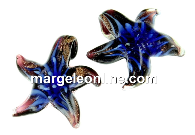 Pandantiv sticla Murano, dimensiune: 27x27mm, diametru orificiu prindere: 5mm, forma de stea de mare. Pretul se refera la 1 bucata, produsul se livreaza fara snur.