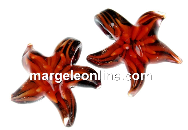 Pandantiv sticla Murano, dimensiune: 27x27mm, diametru orificiu prindere: 5mm, forma de stea de mare. Pretul se refera la 1 bucata, produsul se livreaza fara snur.
