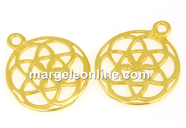 Pandantiv disc-stea-floare, argint 925 placat cu aur, dimensiune: 20x16.5mm. Pretul se refera la 1 bucata.