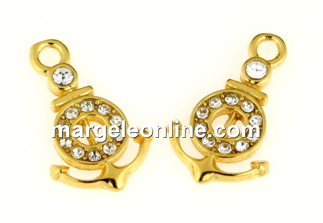 Pandantiv timona cu ancora cu cristale Swarovski, argint 925 placat cu aur, marcat, dimensiune: 17x10mm. Pretul se refera la 1 bucata.