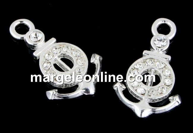 Pandantiv timona cu ancora cu cristale Swarovski, argint 925, marcat, dimensiune: 17x10mm. Pretul se refera la 1 bucata.
