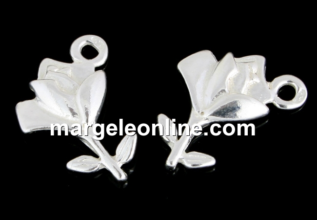 Pandantiv trandafir, argint 925 marcat, dimensiune: 13.5x9.5mm. Pretul este pentru 1 bucata.
