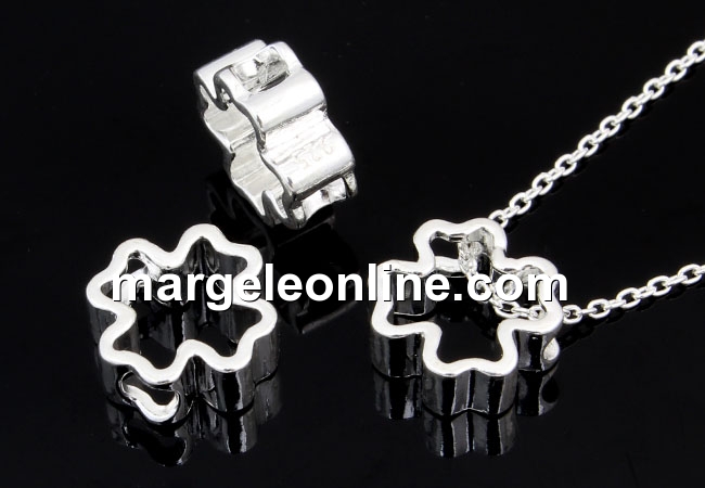 Pandantiv, forma: trifoi, material: argint 925, dimensiune: 10.5x10mm, 4.5 grosime, interior orificiu: 2.6mm. Pretul se refera la 1 bucata.