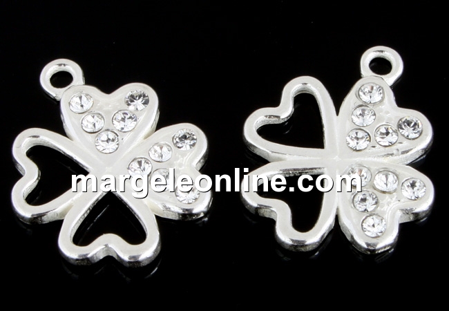 Pandantiv trifoi cu elemente Swarovski, argint 925, dimensiune totala: 15x13mm. Pretul este pentru 1 bucata.