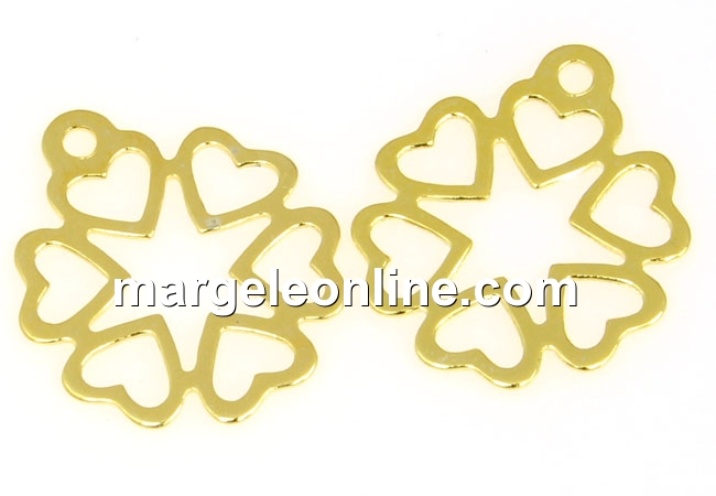 Pandantiv trifoi cu inimioare, argint 925 placat cu aur, marcat, dimensiune: 14x0.4mm. Pretul este pentru 1 bucata.