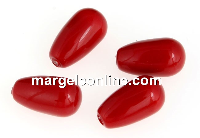Perle Swarovski picatura, red coral, 15x8mm - x2