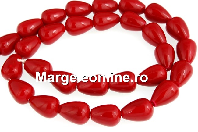 Perle tip Mallorca, forma: picatura, culoare: rosu, dimensiune: 12x9mm. Pretul se refera la 1 sirag de 39-40cm.